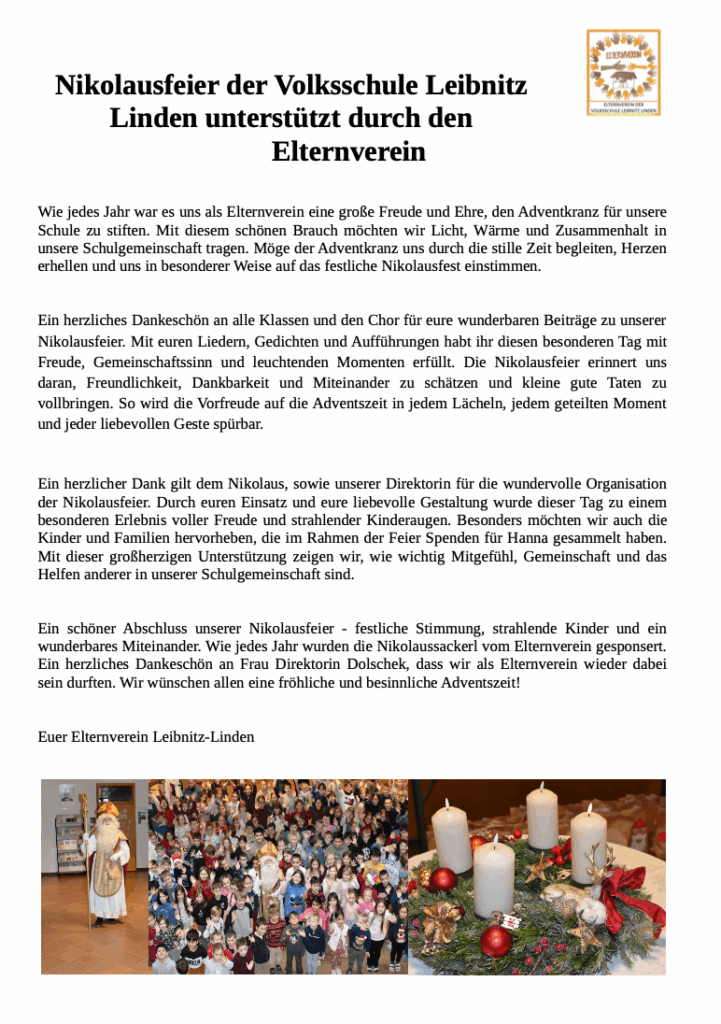 Infos und Kontakt: Wenn Sie den Elternverein aktiv unterstützen möchten, Anliegen / Ideen haben oder spenden möchten, wenden Sie sich bitte direkt an die Obfrau: E-Mail: elternverein.ll@gmail.com